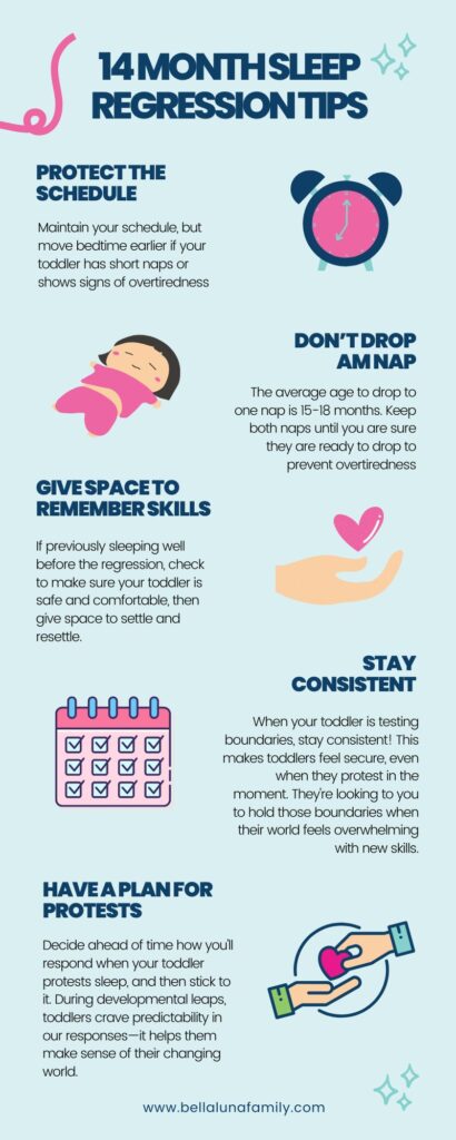 Remember that 14 Month Sleep Regression / Mental Leap 9 is temporary—usually about two weeks of sleep disruption before things improve. Not every developmental leap affects sleep for every child, but many 14 month olds do experience these temporary sleep disruptions.